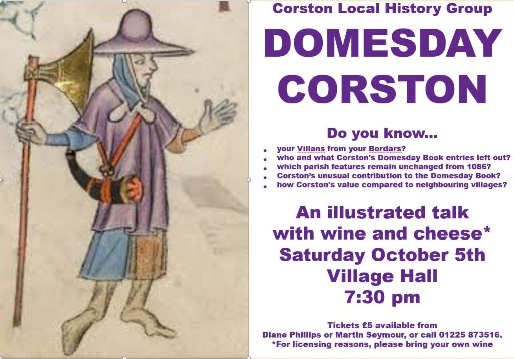 And yes, there is more than one Domesday entry for Corston, but to find out why you will have to join us!